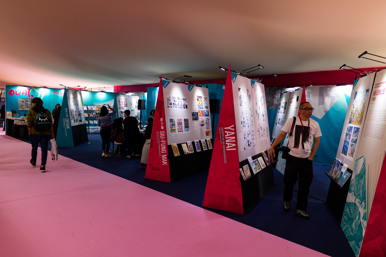 Outre une partie des éditeurs indépendants habitués à la Bulle du Nouveau monde du FIBD, il y avait une poignée d’alternatifs et de fanzines. Parmi les principaux, il y avait L’Association, Cornélius, çà et là, 2042 (ex-2024), Exemplaire, La Cafetière, Les Rêveurs, FLBLB, Rue de l’échiquier, etc. Les trois tables-rondes suivies étaient vraiment intéressantes, très bien animées, même si une autrice (invitée de dernière minute en remplacement d’un désistement) était assez énervante par ses interventions enfonçant des portes ouvertes. Heureusement, Lisa Mandel (Exemplaire) et Simon Liberman (2042) étaient dans le concret et le pratique. Leur double casquette autrice/éditrice et auteur/éditeur leur a certainement permis de mieux comprendre la complexité de la chaîne du livre et de proposer des pistes pour aider à sortir d’une certaine précarité financière.