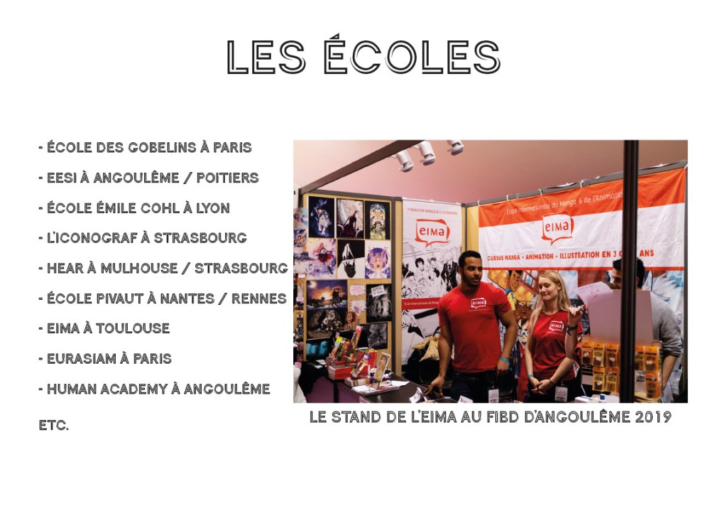 Si la grande majorité des auteur·e·s de manfra sont plus ou moins autodidactes ou viennent de la bande dessinée franco-belge, il y en a (peu) qui ont fait des écoles spécialisées ou des écoles d’art. Ces dernières sont d’ailleurs à privilégier tant la diversité de leurs formations permet d’acquérir de nombreuses techniques et connaissances en art plastique en plus du dessin. En Belgique, les plus connues sont l’Institut Saint-Luc de Bruxelles (par laquelle de nombreux auteurs de BD sont passés) ainsi que l’Académie royale des Beaux-Arts de Bruxelles (mais la bande dessinée n’y est pas enseignée). En France, l’École des Gobelins est la voie royale grâce à un enseignement d’une très grande valeur (toutefois l’animation et le jeu vidéo sont privilégiés à la bande dessinée). Cependant, il y a de nombreuses écoles de qualité en province, telles que l’EESI à Angoulême / Poitiers, l’École Émile Cohl à Lyon, ainsi que L’Iconograf à Strasbourg, la Haute école des Arts du Rhin à Mulhouse / Strasbourg ou l’École Pivaut à Nantes / Rennes, l’EIMA à Toulouse. Cette liste n’est pas exhaustive, bien entendu. De plus, il existe des écoles privées spécialisées dans l’apprentissage du manga. Il y a par exemple Eurasiam à Paris et Human Academy à Angoulême. Une liste très complète de ces écoles publiques et privées est disponible sur le site de la Cité Internationale de la Bande Dessinée et de l’Image d’Angoulême.