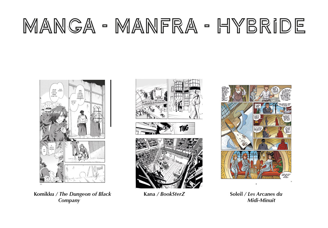 Avant de revenir sur l’histoire de ce que nous appelons ici « manfra » et d’en étudier les différents aspects, il est nécessaire d’en établir une définition, ce qui permet de borner le champ de cette conférence. Pour moi, est du manfra toute œuvre édité originellement en francophonie et qui veut ressembler à du manga, ce qui peut aller jusqu’à l’utilisation d’un sens de lecture de droite à gauche. Il s’agit ici d’écarter les bandes dessinées dites « hybrides » (pour ce que ça peut vouloir signifier) comme L’Immeuble d’en face de Vanyda, La Rose écarlate de Patricia Lyfoung ou L’Extrabouriffante aventure des Super Deltas d’Edouard Court. Par bande dessinée hybride, j’entends les BD qui empruntent différents éléments narratifs aussi bien au manga qu’au Franco-belge (sans oublier les comics) et qui ne sont pas au format « manga ».