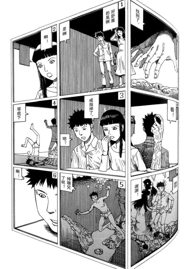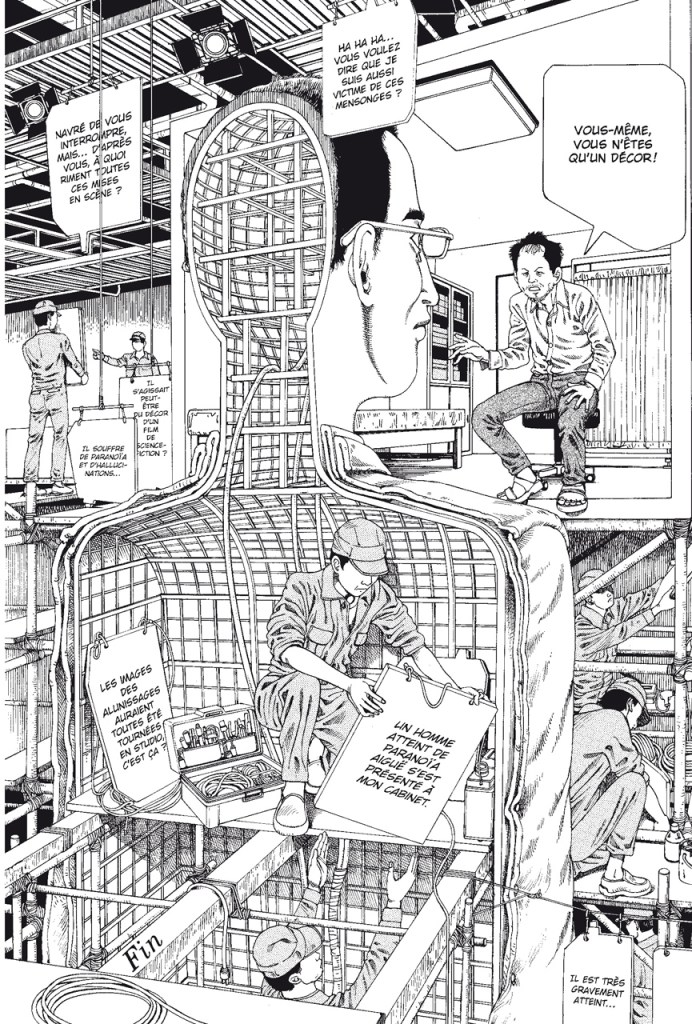 De son propre aveux, Shintaro Kago n’est pas réellement influencé par les mangas d’horreur, même s’il en lit. Il ne se revendique pas du mouvement ero-guro, un mouvement artistique né au Japon à la fin des années 1920. Ses influences revendiquées dans le manga sont Shigueru Mizuki, Fujiko F. Fujio et Katsuhiro Otomo. Il trouve aussi l’inspiration dans l’humour des Monty Python, le cinéma indépendant, les peintures de Salvador Dalí. Il cherche surtout à explorer les tabous de la société japonaise. Il faut dire aussi que s’il crée à destination d’un certain public, intéressé par le côté érotique et grotesque de son univers, il cherche surtout à le choquer, à lui inspirer du dégoût. Pourtant, l’univers qu’il a mis en place n’est pas issu de ses fantasmes et dessiner des scènes de sexe ne lui plait pas particulièrement, c’est juste un passage obligé. Néanmoins, s’il est parfois contrarié par l’impossibilité d’aller au bout de certaines de ses idées, la censure bien-pensante existant au Japon, il estime que la présence de contraintes lui permet d’être plus créatif. Kago regrette toutefois la disparition des magazines érotiques au Japon qui le laissaient assez libre de s’exprimer. Le mangaka est aussi très intéressé par l’expérimentation. Cela se voit tout particulièrement dans Fraction, mais aussi dans plusieurs histoires d’Une collision accidentelle sur le chemin de l’école peut-elle donner lieu à un baiser ? disponible là aussi en français chez IMHO. Il est manifeste que l’auteur joue souvent avec son lectorat, l’amenant là où il veut l’emmener. Toutes ces bizarreries, extravagances, expositions de nudité sont souvent au service d’un propos critique, quoique décalé, sur la société japonaise ou sur l’art. Derrière le non-sens de son œuvre se cache généralement une vraie réflexion artistique. Abstraction, disponible en ligne et en anglais, est une sorte de condensé de ses obsessions.