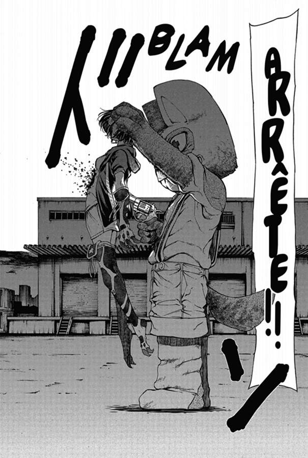 Les combats, nombreux, sont violents et leur issue est généralement fatale. Le mangaka n’édulcore par leur résolution et le sang coule. Elle n’est pas stylisée, elle est à l’image du manga : sombre et sans joie car il n’y a pas de victoire à fêter. Gagner signifie seulement de prolonger son calvaire, d’où des luttes à mort qui n’ont que peu de sens. Néanmoins, cette violence reste loin de la réalité, des exactions qui sont commises lors des conflits armés qui sévissent dans de nombreux pays, aussi bien dans un passé récent qu’actuellement. Cependant, au fur et à mesure de la progression de l’histoire, la violence devient de plus en plus irréelle car totalement exagérée. Un récit épique se met alors en place. Les tomes 9 et 10 sont particulièrement frappants, d’autant plus que les exactions sont commises dans un lieu censé être un sanctuaire. L’horreur est alors à son comble !