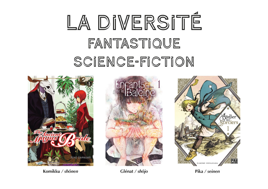 La SF et le fantastique sont des genres très prisé au Japon (notamment dans les romans et le cinéma), ce qui se retrouve logiquement dans le manga. Il existe même des magazines de prépublication spécialisés. Cependant, la plupart du temps, il ne s’agit pas du thème principal, surtout dans le shônen. La SF ou le fantastique sont le plus souvent un cadre dans lequel les auteur·e·s vont développer leur histoire. C’est dans le seinen que l’on trouve les œuvres les plus « pures » SF. C’est aussi un genre assez développé dans le shôjo notamment grâce à Moto Hagio, précurseure du genre dans les années 1970 : la longue nouvelle « Nous sommes onze » disponible dans Moto Hagio Anthologie (shôjo) est particulièrement représentative de la SF des années 1970 et a montré que cette voie était possible à nombre des consœurs de la mangaka.