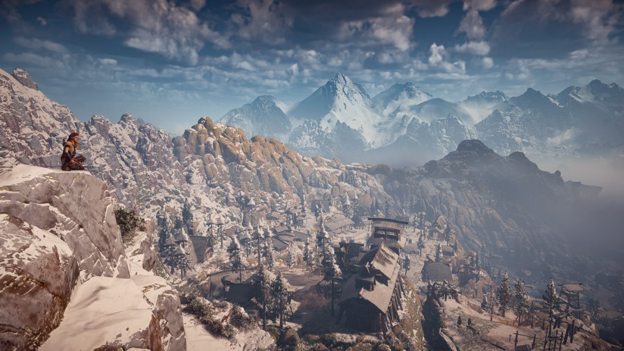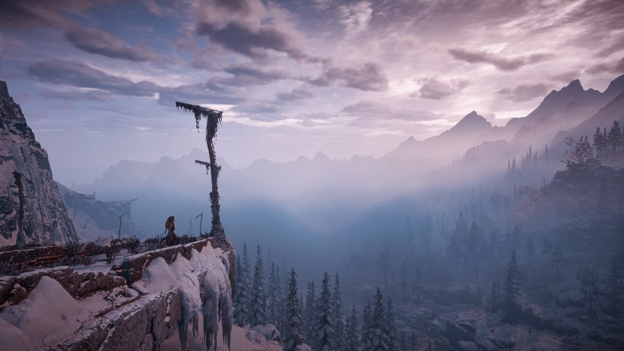 Les Terres sacrées, d’où Aloy est originaire, propose une grande diversité de paysages entre forêts, zones rocheuses, montagnes enneigées, marécages, ruines imposantes, etc. C’est donc une suite inépuisable de lieux à découvrir et à fouiller, même si les matriarches interdisent aux Braves Nora de se rendre dans les ruines des Anciens.