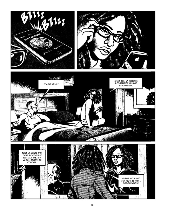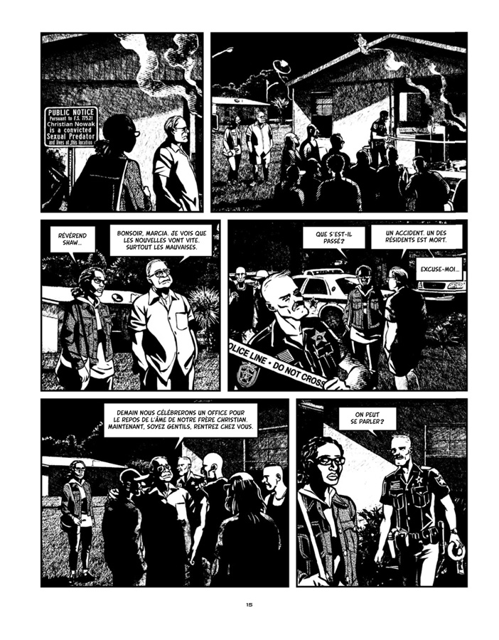 Mais un pédophile est-il amendable ? Peut-il s’empêcher de recommencer ? Les avis divergent et n’allez pas penser que Portela prend une position claire sur la question, même si on peut imaginer la réponse au fil des pages. Il livre avant tout un roman graphique policier efficace, une sorte de thriller, bien que les deux premiers chapitres soient un peu longuets, la mise en place de l’histoire manquant un peu de rythme. Par contre, les quatre chapitres suivants sont magistraux avec une alternance de points de vue, des changements d’unités de temps et de lieux maîtrisés, ne perdant jamais lectrices et lecteurs, et apportant par petites touches les réponses aux différents points soulevés au début du récit. On appréciera aussi que les personnages qui font avancer l’intrigue soient des femmes et que l’importance de la communauté afro-américaine de Pahokee ne soit pas gommée.