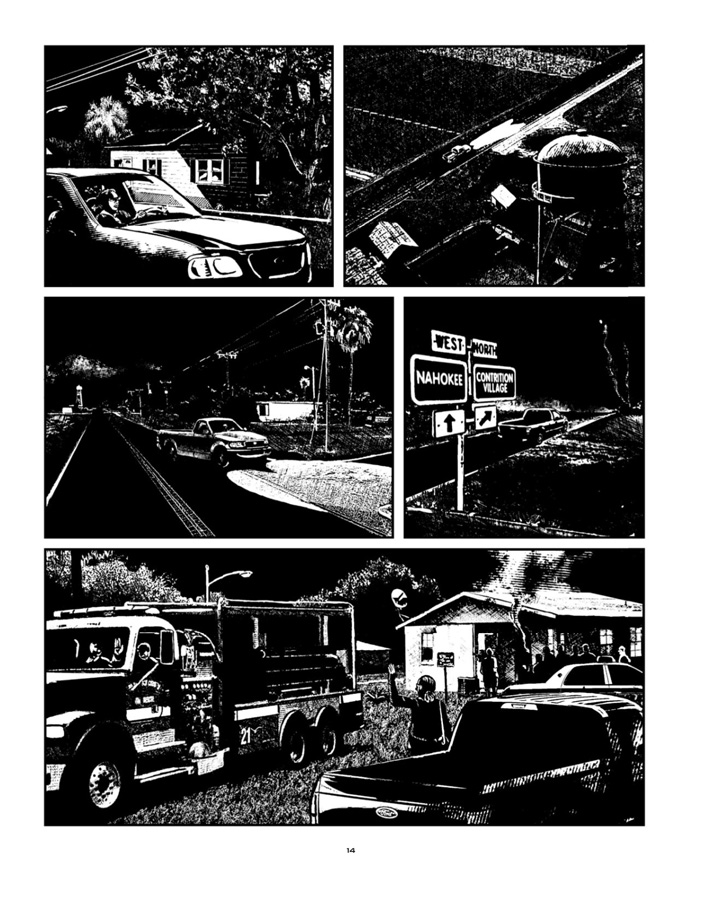 Le dessin très sombre de Keko retranscrit parfaitement l’atmosphère du récit, même si sa façon de dessiner les décors, manifestement d’après photo, rend souvent ses cases moyennement lisibles, les personnages se détachant mal de l’arrière-plan. L’Amérique rurale des états du Sud est ainsi fidèlement reproduite tant on reconnait les paysages, les habitations, les véhicules de la Floride. Dommage que la technique du dessinateur pour le rendu des volumes et des matières repose sur des hachures réalisées de façon peu convaincante. À l’inverse, ses personnages sont parfaitement caractérisés et dessinés de manière plus sobre. Heureusement, les pages sont principalement réalisées avec des aplats de noir, ce qui sied aux thèmes abordés au fil des pages. Le découpage et le rythme de lecture sont tout à fait réussis, avec plusieurs planches muettes de toute beauté.