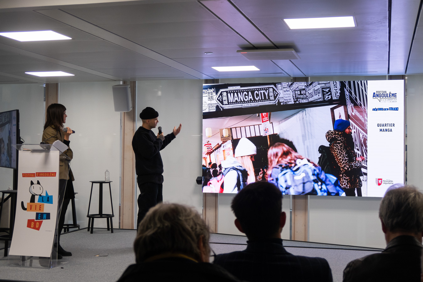 La conférence de presse de la cinquante-et-unième édition du Festival International de la Bande Dessinée d’Angoulême a eu lieu ce jeudi 16 novembre. Nouvelle édition, nouveau lieu… Cette année, c’est au COJO Paris 2024 que la conférence a eu lieu, en petit comité (une centaine de personnes seulement) étant donné le lieu, très sécurisé. J’ai dû, comme quelques autres personnes, faire un peu le forcing pour y assister. J’en profite pour remercier Vincent-Pierre Brat de l’Agence La Bande d’avoir accepté ma demande. En effet, j’assiste au grand raout pré-festival depuis 2009 et ça aurait été dommage de rater celui-ci. Néanmoins, je n’ai pas pu croiser autant de petits camarades du monde de l’édition ou du journalisme spécialisé par rapport aux années précédentes. Dommage…