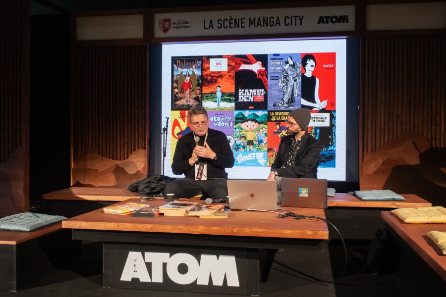 Les tables rondes proposées à la Scène Manga de l’Alpha étaient réussies, du moins celles auxquelles nous avons pu assister, à quelques bémols près. Les titres n’avaient souvent que peu à voir avec le contenu réel. Il y a le bel exemple « Manga et écologie » avec Guillaume Singelin. Bien entendu, ça a parlé surtout de Frontier, des mangas lu par Singelin et de sa fibre écolo, et non pas de l’écologie dans les mangas. Autre cas avec « Bienvenue dans les ténèbres : le manga de l’underworld » avec deux directeurs de collection en invités. Le titre ne veut rien dire et, malgré toute la sympathie que j’ai pour Thimothée Guédon et Mehdi Benrabah, j’imagine qu’ils étaient là pour vendre leur came et rien d’autre. Bien entendu, j’avais mieux à faire ailleurs. Au moins, « Garo, la dissidence manga » avec Claude Leblanc ou « Le genre dans le manga : traduire l’ambigu » avec Satoko Fujimoto (qui nous a bien spoilé Cocon de Machiko Kyô alors qu’on ne lui demandait rien) et Miyako Slocombe, nous ont proposé un contenu en adéquation avec le titre. En plus, ces rencontres étaient intéressantes et bien animées (par Frederico Anzalone pour la première et Xavier Guilbert pour la deuxième). Par contre, on a eu droit à du jamais vu, de l’incroyable, de l’inadmissible avec « Le shôjo manga au-delà des frontières » avec trois universitaires (deux Japonaises et une Belge flamande enseignant au Japon), deux bédéastes, un auteur et une autrice, ces deux-là étant venus des USA. Il y avait trop de monde à intervenir, et c’était totalement hors sujet une bonne partie du temps, sans aucune animation car tout le monde était là pour lire de son côté sa (courte) intervention, le pauvre Xavier étant seulement interprète pour la salle. Une seule intervenante avait réellement quelque chose à dire en rapport avec le thème mais n’a pas eu le temps de le faire car passant en dernier. Du grand n’importe quoi… Je terminerai sur un petit coup de gueule à propos de la scène : elle n’était pas assez surélevée, ce qui fait qu’on ne voyait pas les intervenant·e·s à moins d’être aux deux premiers rangs. Pire, l’écran était placé bien trop bas et était en grande partie masqué. Il faudra absolument revoir la conception de la scène l’année prochaine. C’était une catastrophe, là…