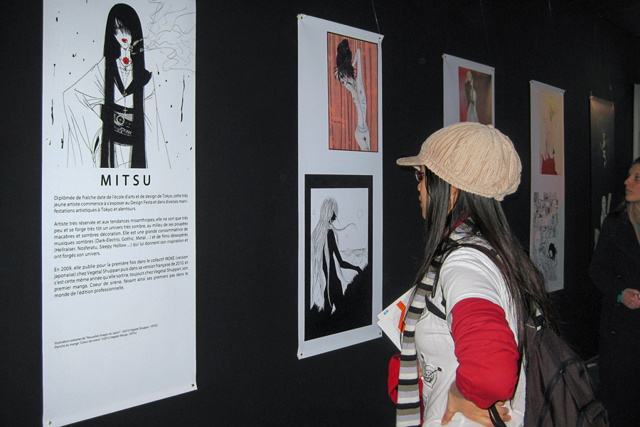 Le nouveau responsable de ce qui est devenu l’Espace Mangasie, placé sur un côté du Monde des bulles sis Place du Champ de Mars, est Erwan Le Verger. Ce n’est pas un inconnu du festival car il faisait partie de l’équipe Tsuki qui proposait des ateliers liés au manga une dizaine d’années auparavant. Forcément, tant le Manga Building était apprécié par la délégation mangaversienne, , tant le nouvel espace l’est moins. La déception est au rendez-vous. Pourtant, force est de reconnaître que cette première édition de Mangasie est plutôt réussie, malgré un vraisemblable manque de budget. Le programme n’est pas inintéressant. L’exposition, dédiée au manga « underground » au féminin, a l’avantage d’aborder un sujet doublement ignoré : les mangaka femmes et la BD « alternative » japonaise. C’est simplement dommage que son côté « cheap » laisse une impression mitigée dès l’arrivée. L’idée de s’associer à MCM peut sembler bonne, ne serait-ce que pour essayer de s’adresser à un public jeune. Ceci dit, le manga intéressant principalement les adolescents en francophonie, cette démarche de s’associer avec une chaîne musicale du câble n’est peut-être pas indispensable pour assurer la popularité du lieu, même si les passerelles sont évidentes.