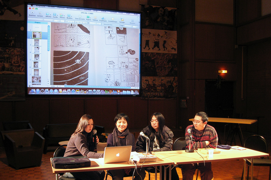 Heureusement, la bande dessinée asiatique est présente en dehors de l’Espace Mangasie. Ainsi, en 2011, les Ateliers Magelis accueillent une exposition intéressante et instructive : « Kaléidoscope, une histoire de la bande dessinée à Hong Kong » qui retrace cinquante années de BD hongkongaise. Cette exposition est bien complétée par une conférence donnée au Conservatoire par Connie Lam et Alan Wam. Les Éditions Fei sont présentes au Nouveau Monde et la revue Special Comix, qui a gagné le prix de la meilleure revue alternative l’année précédente, a un petit stand au Nouveau Monde. De plus, les auteurs / représentants de la revue ont une rencontre organisée à l’auditorium du Conservatoire qui est animée par Camilla Patruno (traductrice et journaliste BD) et Li-Chin Lin (auteure taïwanaise installée en France). Il y a aussi la présence en Rencontre Internationale de Riyoko Ikeda (La Rose de Versailles chez Kana), pourtant plus intéressée depuis 2009 par sa carrière de cantatrice que celle de mangaka. N’oublions pas l’exposition « off » sur YaYa, située dans un vieux bus placé en retrait sur la place Saint Martial.