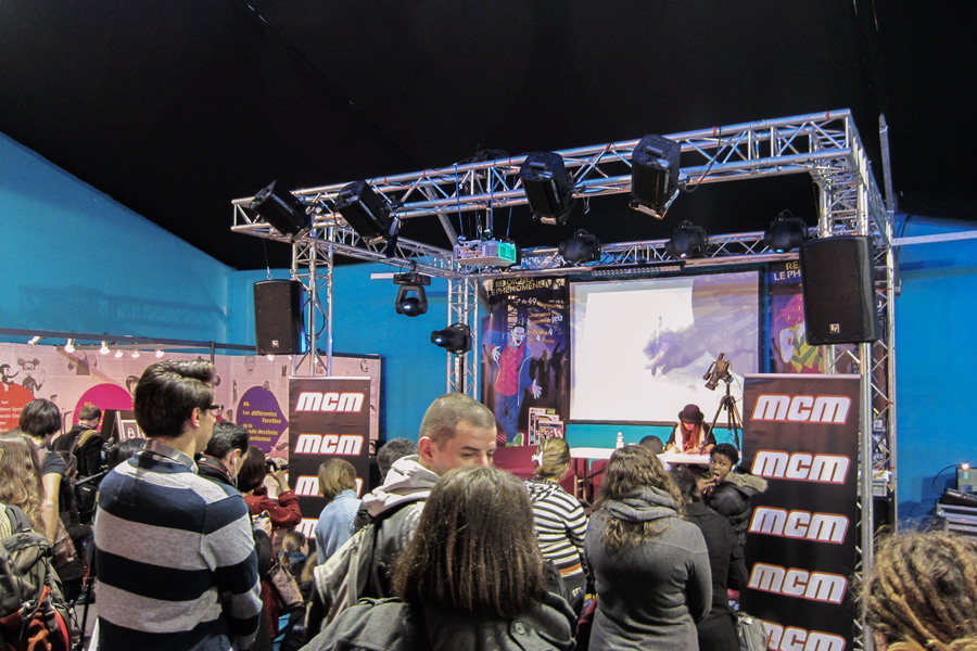 La seconde année de Mangasie est un ratage quasi complet. Entre un programme peu inintéressant, deux animateurs lamentables (Miko et Cartman de MCM), une exposition numérique ratée, ce n’est pas un nouvel emplacement (Le Monde des bulles 2), en théorie partagé avec la bande dessinée américaine (c’est plutôt un fourre-tout de petits éditeurs venus de tous horizons), qui sauve cette nouvelle organisation. Seul le retour de la Corée du Sud avec un beau stand (Komacon) vaut le détour. Ayons une petite pensée pour IMHO qui, avec son stand plutôt caché, a peu de fréquentation. Il y en a un peu plus uniquement lorsque son auteur invité, Atsushi Kaneko, est en dédicace. Kurokawa fait à nouveau acte de présence, ce qui n’a aucun intérêt pour nous. Inutile de dire que nous ne consacrons que peu de temps au lieu, avec toutefois ce qu’il faut pour assister à une rencontre sur le numérique avec Jérôme Chelim (qui remplace Raphaël Pennes au pied levé) de Kazé Manga et Sébastien Naeco, un spécialiste de la question.