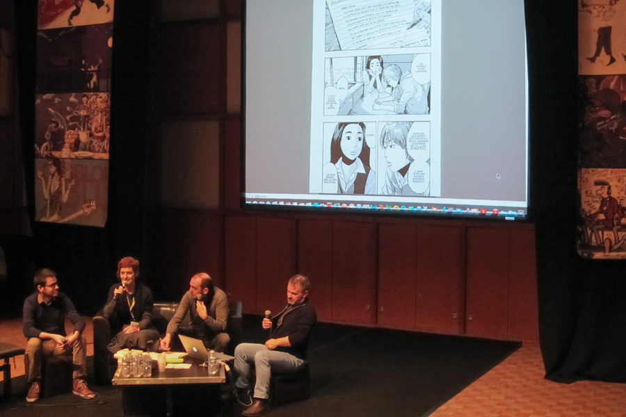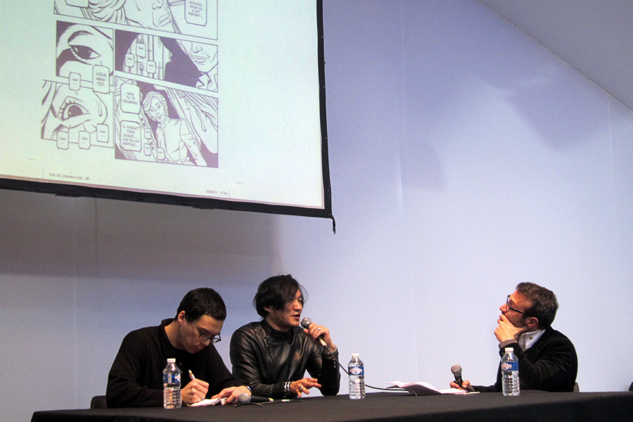 Concernant les rencontres, conférences et tables rondes, il faut surtout signaler la visioconférence organisée le samedi matin entre Jirô Taniguchi (présent à Tôkyô sur le site de l’Institut français du Japon) et François Schuiten (dessinateur des Cités obscures), animée par Benoit Mouchard, le directeur artistique du festival, et Julien Bastide, le responsable du Manga Building. Pendant 1h30, les deux auteurs échangent sur leur conception du médium et leur façon de travailler. Puis ils répondent aux questions du public. Grâce à Casterman, grand pourvoyeur d’invités asiatiques, les quatre jours du Manga Building sont rythmés par les rencontres avec Kim Dong Hwa (Histoire couleur terre), Yoshio Sawai (Bobobo-Bo Bo-Bobo) et Daisuke Igarashi (Sorcières) dont le compte rendu est disponible sur le mini-site « Mangaverse à ». N’oublions pas Tori Miki (Intermezzo chez IMHO) qui, comme ses trois « collègues », a droit à la grande salle Buñuel qui résonne comme une cathédrale par manque de public. Le Coréen Kang Do-ha (Catsby chez Hanguk / Casterman) et le Hongkongais Lai Tat Tat Wing (L’Enfer de Jade chez Hua Shu / Casterman) ont droit, eux, à la salle Méliès, bien plus adaptée par sa taille à ce genre de rencontre qui n’attire jamais la grande foule. Ladite salle est aussi le lieu de deux conférences : « Les onomatopées dans la bande dessinée japonaise » par Marie- Saskia Raynal (traductrice et ancienne du Virus Manga) et « De Dragon Ball à Death Note : une étude du “shônen manga” », par Nicolas Penedo (journaliste spécialisé à Animeland). Enfin, n’oublions pas l’atelier « Le Mystère des bulles : comment sont traduits les mangas ? » animé à trois reprises par Grégoire Hellot, le responsable de Kurokawa, qui a aussi proposé une conférence sur le même thème le jeudi au Pavillon Jeunes Talents (lieu qui a aussi organisé un débat sur le « manga européen») et les nombreux ateliers de dessin animés par des étudiants de l’école privée Eurasiam.