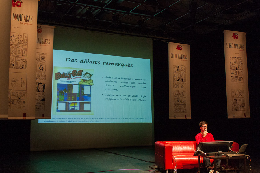 Devenu en 2013 « Little Asia », l’espace dédié aux bandes dessinées asiatique, dorénavant sous la responsabilité de Nicolas Finet (journaliste, spécialiste de l’Asie), est réduit à une petite salle (le Studio) située tout en haut du théâtre d’Angoulême. Elle est accessible uniquement par un interminable escalier. Il faut vraiment être motivé·e pour assister à une des sempiternelles performances graphiques, cette fois avec la participation d’auteur·e·s venus des trois Chine (Taïwan, Hong-Kong, Chine continentale), à des projections d’animés ainsi que d’épisodes de la (sans grand) intérêt websérie « Raconte-moi un manga ». Il y a quand même plusieurs tables rondes autour de la BD taïwanaise, une autre autour de l’œuvre de Leiji Matsumoto, un des invités du festival, une conférence présentant le Comix Home Base situé à Hong-Kong (animée par Connie Lam, sa directrice), et enfin, une autre consacrée à Billy Bat de Naoki Urasawa, animée par Alex Orsini (spécialiste du mangaka et responsable du site « La Base secrète »). Ne parlons pas de ce qui ose s’appeler une exposition dédiée au manga et présentant le titre Deux mangakas à Angoulême (Kana). Le résultat : un programme qui réussit l’exploit d’être plus inintéressant que l’année précédente, du moins pour le peu que nous pouvons en voir, ayant rarement le courage de monter au Studio alors qu’il y a tant d’activités intéressantes à faire au festival.