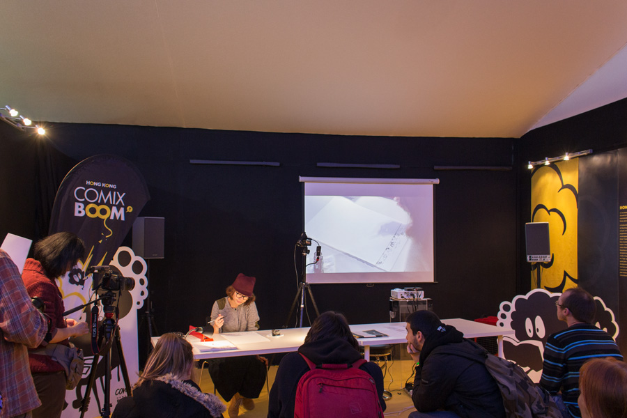Les personnes les plus courageuses peuvent aller en haut du théâtre pour assister à des performances graphiques au Studio, histoire de revenir deux années en arrière. Eiji Otsuka propose deux masterclass au Nil (à côté du Musée du papier, tout en bas, sur les bords de la Charente). Enfin, nous pouvons toujours compter sur le Conservatoire pour nous proposer des tables rondes ou des conférences sur la bande dessinées asiatique. Elles sont au nombre de quatre dont la plus intéressante est peut-être bien celle consacrée au lettrage, Eric Montesinos étant un des adaptateurs graphiques les plus connus (et doués) de francophonie. La bulle du marché des droits n’est pas en reste avec deux rencontres réservées aux professionnels, une sur le Comix Home Base animée par Thomas Maksymowicz (Rédacteur en chef de Coyote Mag), ce qui permet ensuite de retrouver et de discuter un peu avec Connie Lam, et une autre sur l’évolution de la bande dessinée à Hong-Kong (à laquelle nous ne pouvons assister pour cause de conflit d’emploi du temps).